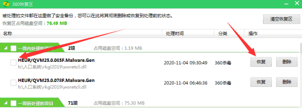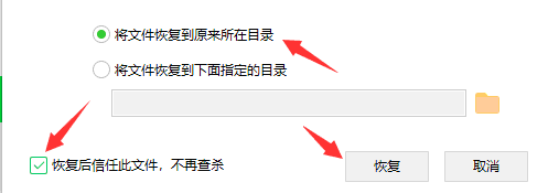 選擇恢復后信任此文件,然后點恢復按鈕。
